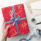Feliz Natal Golden Script Custom Name Bright Red Wrapping Paper