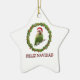 A red masked parakeet in a Santa Hat encircled in a Christmas wreath decorates these products with a text that reads "Feliz Navidad