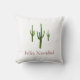 Feliz Navidad desert throw pillow with three saguaro cactus images on a white background. With red lettering, you can customise with your own message. Great for celebrating Christmas with a Spanish southwest style.