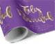 Feliz Navidad Elegant Purple and Gold Script Wrapping Paper