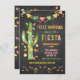 Ole', Celebrate the Christmas Mexican Style with this colourful and fun, watercikir Feliz Navidad christmas invitation with a cactus decorated with christmas lights and ornaments. Features a colourful banner Papel Picado against a chalkboard background.