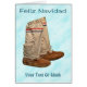 My favourite pair of mukluks superimposed on a snowy background image with Spanish text reading, "Feliz Navidad". Add your own additional text.
