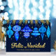 This Christmas design features hand painted watercolor Christmas tree ornaments and foliage in blues on a dark navy blue background, the text reads 'Feliz Navidad' you can change the family name and the year. All the text on the front will be real gold foil. On the back of the design are more hanging ornaments with space for you to write a message, or you can leave it blank to hand write your message. See the whole matching collection. Feel free to reach out if you need any assistance.