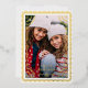 This modern holiday photo card features one vertical photo, a classic white background, and a papel picado inspired frame in raised gold foil. The greeting and your personalised text are in raised foil also. This design is festive and elegant! The background colour is fully customisable. The raised foil on this card really shines and adds that extra special touch to your holiday cards!