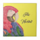 Feliz Navidad macaw ceramic tile with a red parrot on a yellow background. Blue lettering can be customised with your own message. Great for wishing a Merry Christmas with a theme from Mexico.