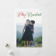 Elegant Feliz Navidad photo card with beautiful cursive typography in red and green. These modern holiday family photograph Spanish Christmas cards feature gorgeous script and your name in white over the full vertical picture.