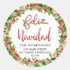 Feliz Navidad Red Watercolor Holly Wreath Classic Round Sticker