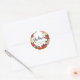 Feliz Navidad Script Red Poinsettia Floral Wreath Classic Round Sticker