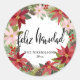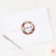 Feliz Navidad Script Red Poinsettia Wreath Classic Round Sticker