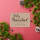 A beautiful design with the message 'Feliz Navidad ' in beautiful real gold foil text anyone . Background colour is customisable