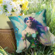 Female Blue Hair Fairy Portrait in Green Dress Cushion