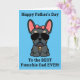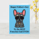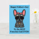Frenchies, show your Dad some love this Father’s day with a personalised card just from you. Message on the front of the card reads “Happy Father’s Day to the Best Frenchie Dad Ever!" Inside message reads “I love you more than walkies, Happy Father’s Day.” The design features a cute cartoon style illustration of a female blue and tan coloured french bulldog wearing a pink bow and collar. Font and background colour and be changed by selecting “Click to customise further.”