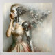 Robotic female cyborg ai art. Women in a pale pink dress with robotic metal arms and neck.