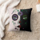 Female Face Pillow - Woman Face Skull Abstract. Fantasy flower decorated female skull art. You can customise your female skull background for different effects and styles. great gift idea for those that love skull art. Skull home decor that you can customise for your living-room or bedroom colour scheme.