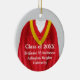 Personalised double-sided graduation ornament decorated in red and gold gown colours for that special female senior. Edit custom text on front and back in the easy Zazzle text editor.