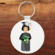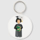 A female graduate all dressed up for graduation. This design looks really effective on this Keychain