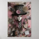 Female Hatter Pink Mixed Media Collage Poster