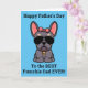 Frenchies, show your Dad some love this Father’s day with a personalised card just from you. Message on the front of the card reads “Happy Father’s Day to the Best Frenchie Dad Ever!" Inside message reads “I love you more than walkies, Happy Father’s Day.” The design features a cute cartoon style illustration of a female lilac and tan coloured french bulldog wearing a pink bow and collar. Font and background colour and be changed by selecting “Click to customise further.”