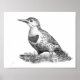 Black and white illustration of female Northern Flicker by Yuichi Tanabe