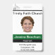 Custom church badge for a Female Pastor, although it can be customised for any church emloyee. Each part of this ID badge can be modified to suit your needs. The name of the church, the staff member's photo, the title of the person and the address and phone number can all be customised. There is also an ID number on the back which can be modified or deleted.