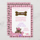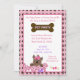Celebrate your dog's birthday with a pet party blowout. This cute invitation has a pup with a pink bow and the word woof. Invite all of your puppy's playmates and friends. Add your party details for the perfect birthday invitation. Brown bone has the words Pet Party.