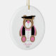 The bear on this fun ornament is wearing a black and pink graduation robe with a mortarboard.