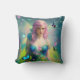 Female Pink Hair Fairy Portrait in Green Dress Cushion
