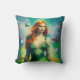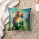Female Red Hair Fairy Portrait in Green Dress Cushion