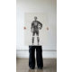Monochrome watercolor depiction of a female soccer goalie holding a ball. The black and white tones with expressive ink splatters create a bold, minimalist effect. Perfect as a stretched canvas print for sports enthusiasts or modern interiors with a clean and artistic aesthetic.