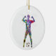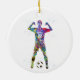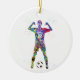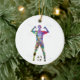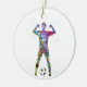Vibrant watercolor design of a female soccer player featured on a ceramic ornament. A stylish and artistic piece ideal for decoration or as a thoughtful gift for soccer lovers.
