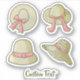 Four women light yellow summer hat icons with pink bows and ribbons.