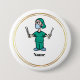 This button features a female surgeon holding a big scalpel and forceps. Below you can personalise this with a name or whatever you want to put on this button i.e. BEST DOCTOR. You are free to change the background colour if you want. Due to the design style you can only buy this on a round button, but you can buy this design on another size of round button. This also makes a great stocking stuffer gift for the doctor you know. Designed by Sheila Cicchi, Brownielocks.com. All Rights Reserved. NOTE: Doctors' Day is annually on March 30.