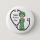 We've got a female nurse in green surgical clothing on this button. In the background is a big stethoscope! The text on this can be changed to have a name, a hospital, or whatever you wish. This fits all size buttons also.