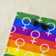 This design features rainbows and the symbol for a female.