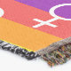 A quality printed throw has its advantages. This is a much finer weave throw than its loopier cousins, and though lighter, it is worth the investment for custom room accessorizing. The back is much prettier than the typical brown, and the fringe on the long sides very vivid, the selvage nicely done. Before photographing, I washed the throw in cold water, delicate, with a thicker woven throw the same size. On tumble dry low, this throw was dry in half the time as the other. This is a very practical quality if you use throws for furniture covers or to wrap up in frequently. The sleekness of the fabric makes it a great layer for accenting or protecting without the feeling of sitting on too much stuff. Perfect for napping or when you feel a light chill coming on. The color printing is beautiful and on this fabric, matched the design and color of my Photoshop image. This is an advantage for blending room fabrics and colors. The fringe on the short sides prints the colors from the design image and therefore varies from the side fringe. I streaked a white fractal line through the plaid pattern to give the illusion of weaving. This printed as crisp as an illusory thread, and put some white in the short side fringe, showing another advantage of print vs loomed- for artistic purposes, line lines, detail, and color integrity can be planned and preserved. My loomed throws have color limitations and more of a needlepoint texture. Print throws reproduce an exact image. The throw felt a little stiff straight out of the package, but this went away in the first delicate wash. Of course I searched the wash water for ink or bleeding and there was none.