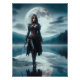 A female Vampire standing at the edge of a lake the moon and her are reflected in the water, by martinspixs.