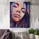 Let your walls down and feel the flood of peace surround you with this contemporary street-style artwork. This mixed media acrylic painting art print features a colourful and stunning abstract realism portrait of a woman in deep contemplation, drowning out the chaos of the world -featuring bright hues of purples, peach, blues and pinks. Originally painted on stretched canvas with archival acrylics and inks.