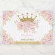 This design features a sparkly royal crown in faux gold glitter decorated with soft watercolor blush peonies and sprinkles of confetti.