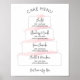 Feminine tiered cake flavour menu with 4-tier cake graphic and space for custom flavour names for each layer. This blush pink aesthetic wedding cake sign is perfect to create personalised cake menu for your cake bar, wedding reception or cake boutique. More tier options available in our shop!