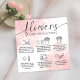Pink aesthetic Flowers Care Instructions Card with feminine watercolor background, script fonts and cut flowers care icons. This editable bouquet care guide includes the most important cut flowers care information so your customers know how to care for fresh blooms. Add your business details and logo and make the perfect finishing touch to your florist packaging design.