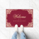 Feminine Burgundy Pink Welcome Rose Gold Leaves Doormat