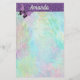 This pretty stationery has a band of faux purple glitter at the top and a pretty purple and black swallowtail shaped butterfly. The rest of the page is a mottled pastel. You can change or remove the name at the top. Matching plain sheets are available as well. Thank you for looking at my design. See other stationery and writing papers in my "Write it Down" collection.