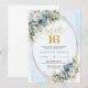 Feminine Dusty Blue Floral Sweet Sixteen Invite
