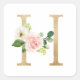 Feminine Faux Gold Foil Floral Letter H Monogram Square Sticker