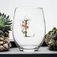 Feminine Floral Monogram Letter L Stemless Wine Glass
