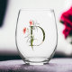 Feminine Floral Monogram The Letter D Stemless Wine Glass