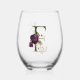 Feminine Floral Monogram The Letter E Stemless Wine Glass