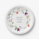 Celebrate a 90th birthday in lovely feminine style with this modern floral wildflowers birthday party plate. A beautiful watercolor painted wreath of mixed wildflowers in hues of pink, purple, peach, blue and white with scattered greenery make this design pop with style. Personalise the text template with the guest of honour's name. You can also edit the age to any age! These plates are available in 2 sizes; shown here in the smaller 7-inch diameter size, they are also available in a 9-inch diameter size.