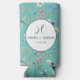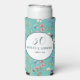 Feminine Light Teal Floral Wildflowers Pattern Seltzer Can Cooler.