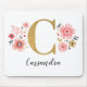A beautiful, feminine monogrammed pink floral mouse pad, featuring pink flowers and a faux gold monogram letter C. Personalise the mouse pad by adding your name underneath the monogram. Makes a fun gift for a friend or for a bridesmaid gift. Designed for you by Blackberry Boulevard.